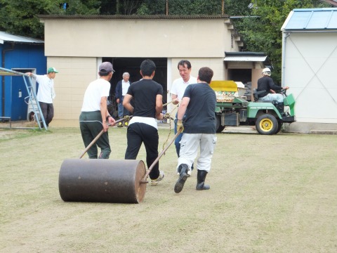 コアリング後にライグラスを播きました。