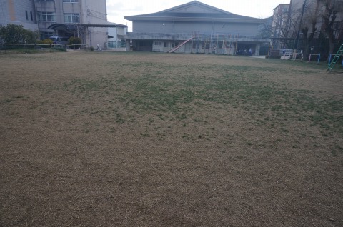 校庭中央部が集中的に使用されたため裸地化しています。
