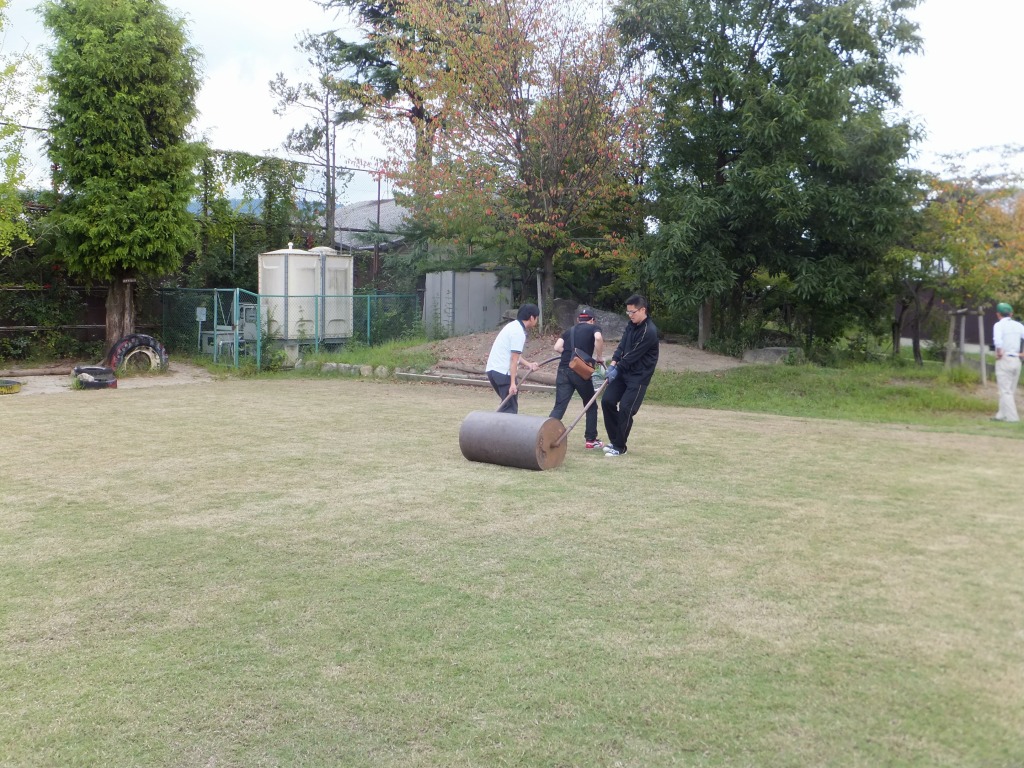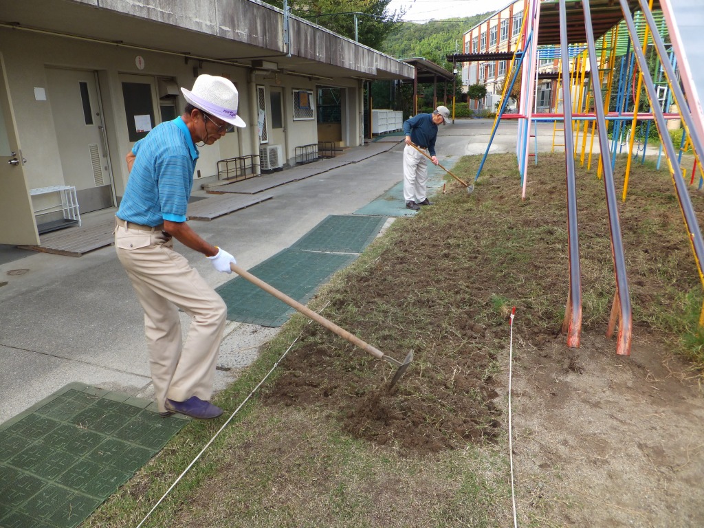 抜き取ったコアは遊具周辺の窪地に敷均しました。