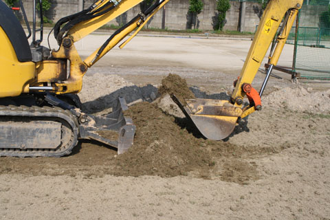 搬入された山砂とセラミック、有機質を混合