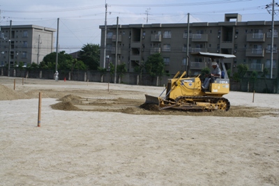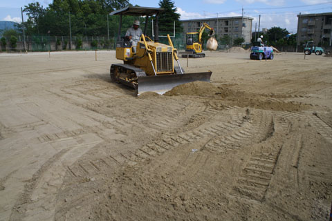 混合土を15cmの厚さに敷き均す