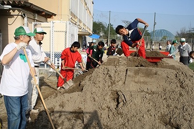 目土の積み込みには、当校のラグビー部員が活躍しました