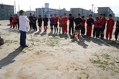 ラグビー部員とNPO会員の顔合わせで、 キャプテンより芝生化への感謝が延べられました