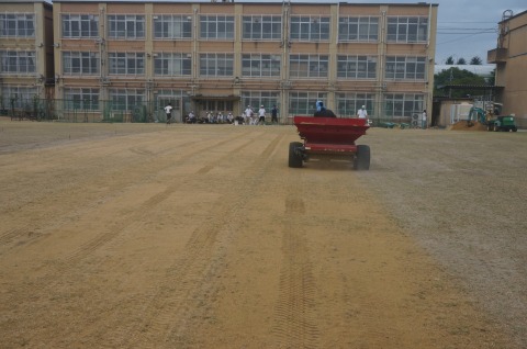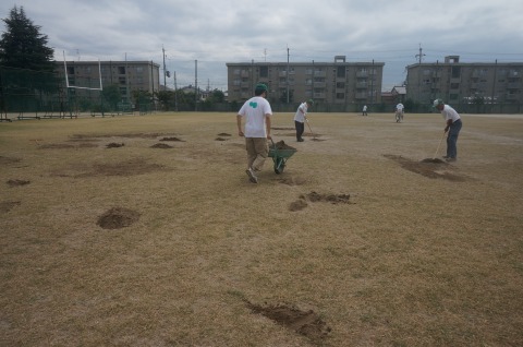 更新作業に先立ち、凹地に目土を敷均しました。