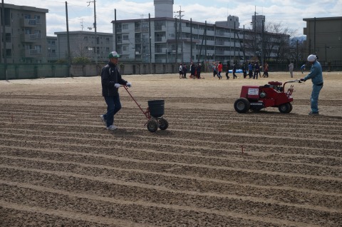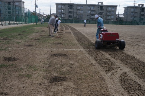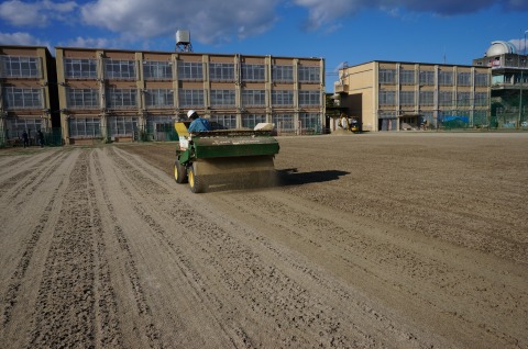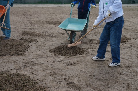 コアはグラウンドの低い部分に敷均しました。