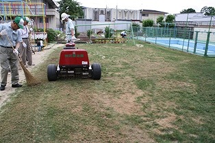 更新作業前に芝刈りを実施