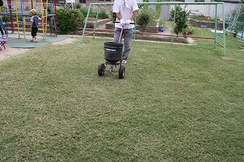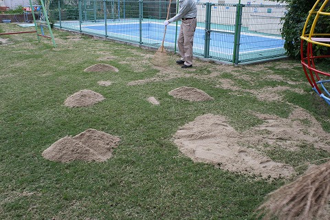 手作業で目土散布