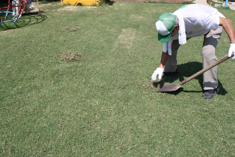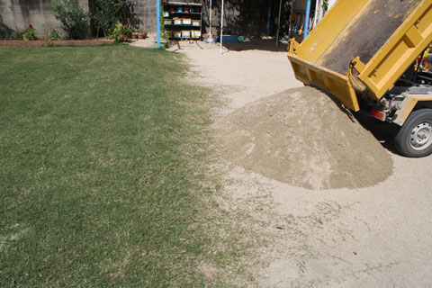 目土を散布(余った分は砂場に補充)