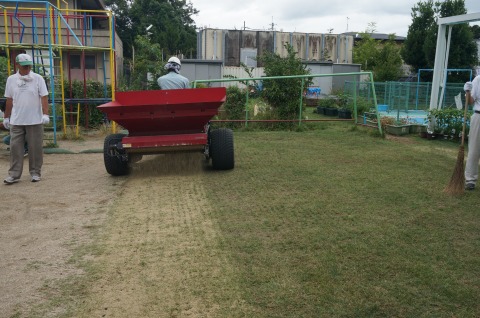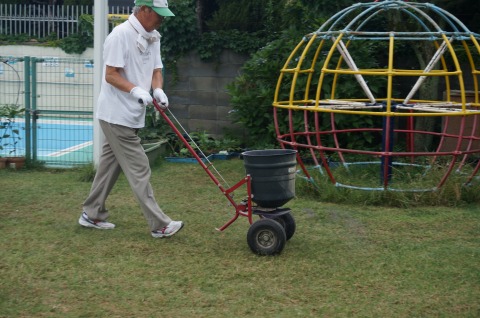 コアリングを行って、夏芝(バミューダグラス)のタネ15g・uを播きました