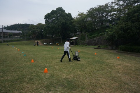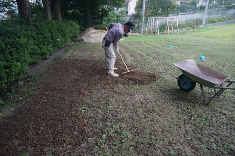 冬芝(ライグラス)のタネ45g・uを播き、1.1mm厚で目土を散布しました