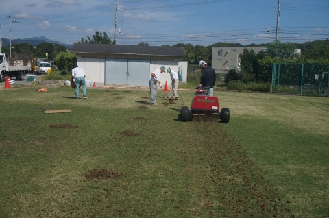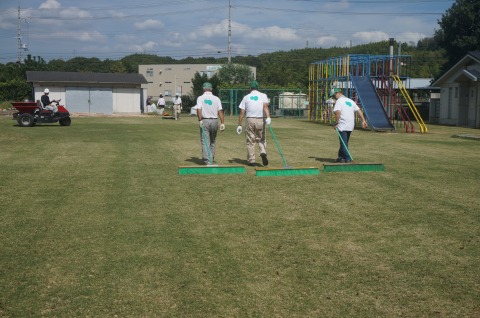 目土散布後にブラッシングを行いました。