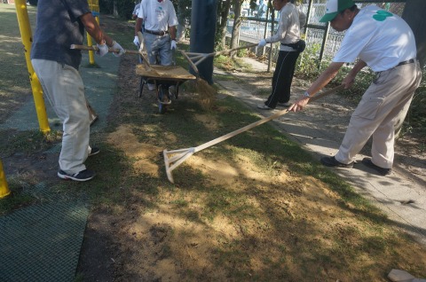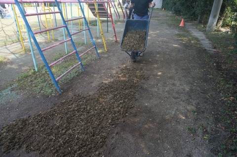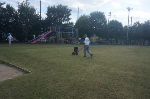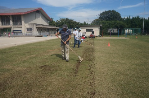 目土散布機が入らない所は手作業で行いました。