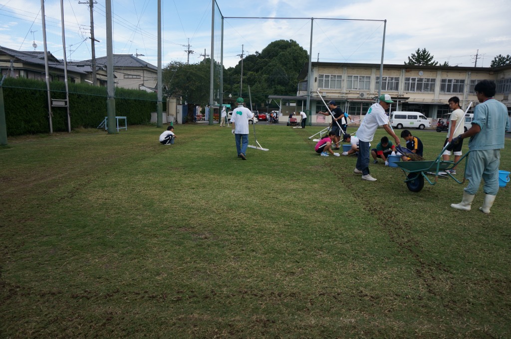 1.2mm厚で目土を散布しました。