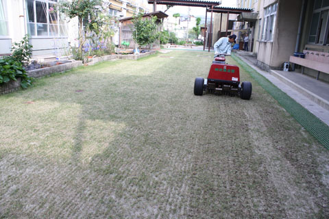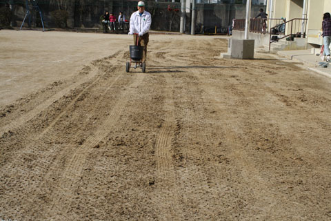 冬芝(ライグラス)播種後、2mm厚で目土を散布