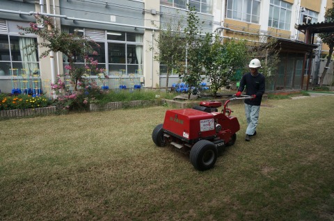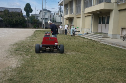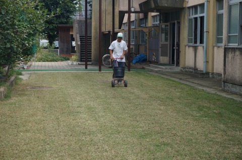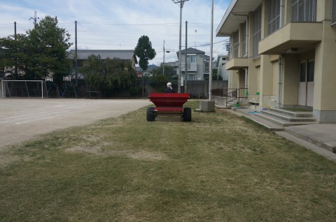 冬芝のタネを播いて、1.2mm厚で目土を散布しました。