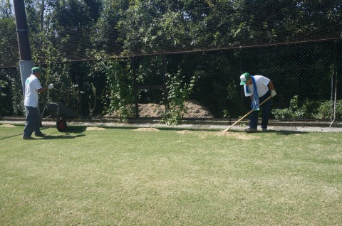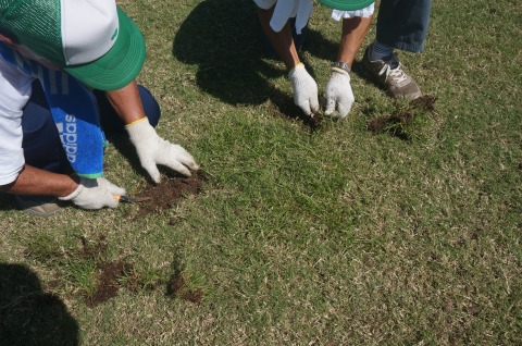 群生しているヒメクグ(カヤツリグサ)を除去しました。