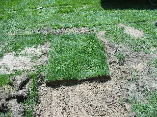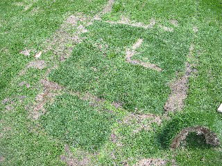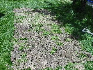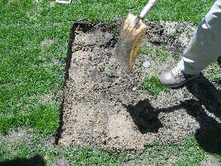 芝生を切り出したあとに、埋め戻した箇所