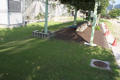 藤棚の下は間伐材を利用したインターロッキングが設置されました