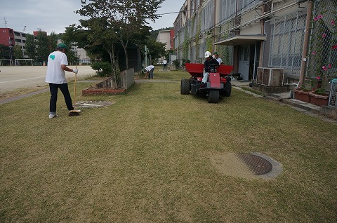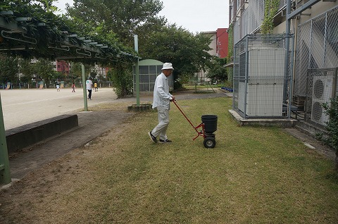 コアリングを行い、冬芝(ライグラス)のタネ45g・uを播きました。