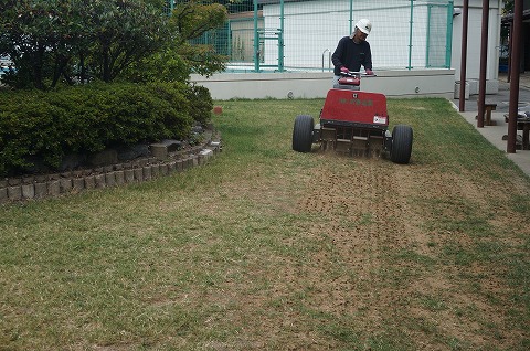 1.4mm厚で目土を散布しました。