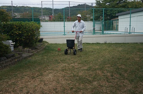 冬芝(ライグラス)のタネ45g・uを播きました。