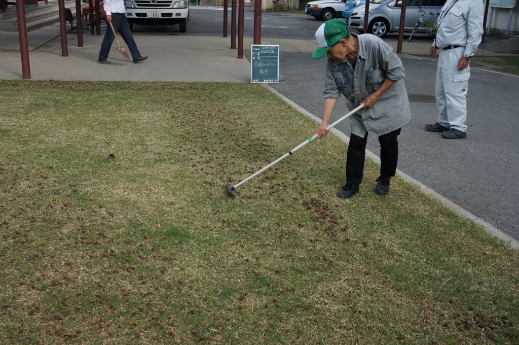 1.4mm厚で目土を散布しました。