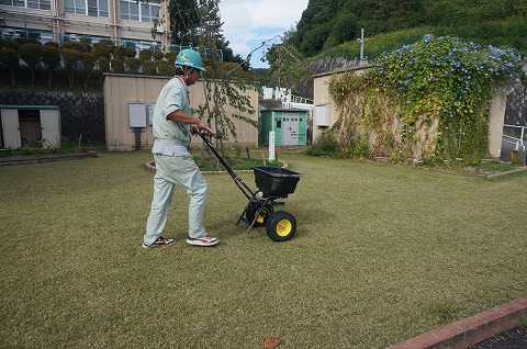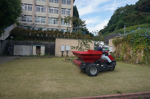 芝生化後、初めての更新作業(WOS)です。冬芝(ライグラス)のタネ45g・uを播きました。