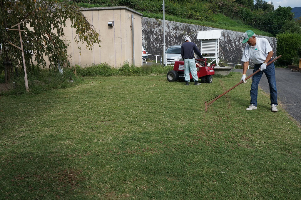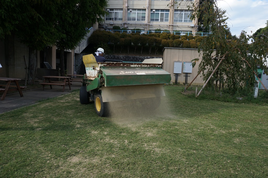 1.3mm厚で目土を散布しました。
