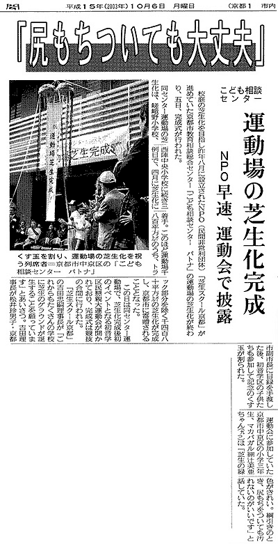 NPO芝生スクール京都 吉田忠嗣理事長より