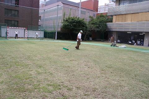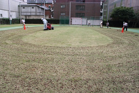 目土散布の後、ブラッシングを行いました
