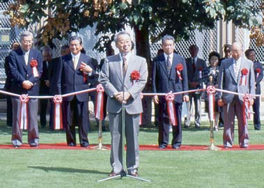 テープカットに先だって、祝辞を述べる細見吉郎委員長