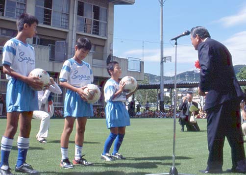 川淵チェアマンがサイン入りのサッカーボールをヘディングでパス!