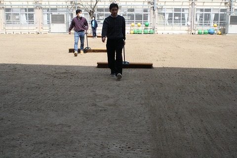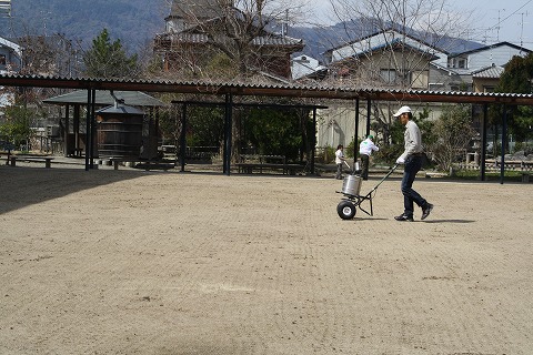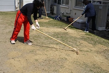 スマイルガーデンは手作業で目土を散布