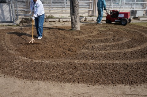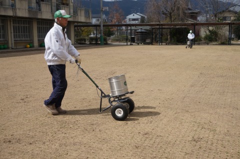 基盤土壌を下げるため目土散布は行わず、ブラッシングを実施しました