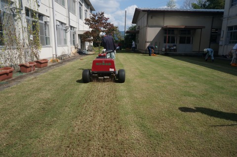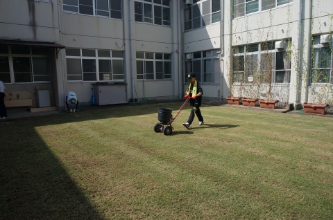 冬芝(ライグラス)のタネ45g・uを播き、1.2mm厚で目土を散布しました