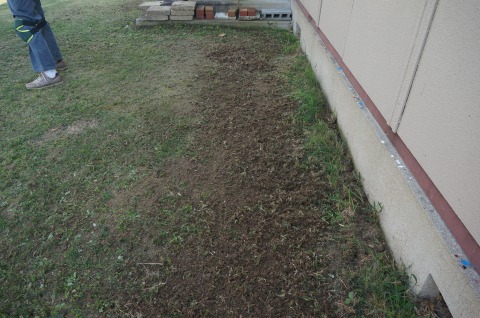 抜き取ったコアは中庭の低い所に敷均しました。