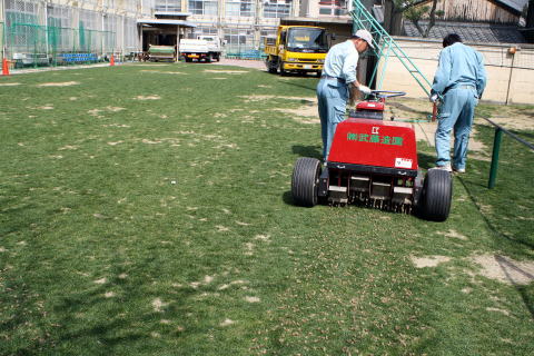 オーバーシード前のコアリング