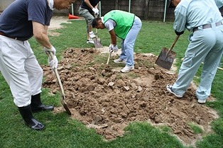 目土散布(手前は天地返しした所)