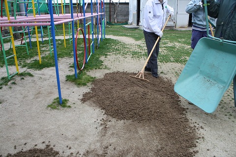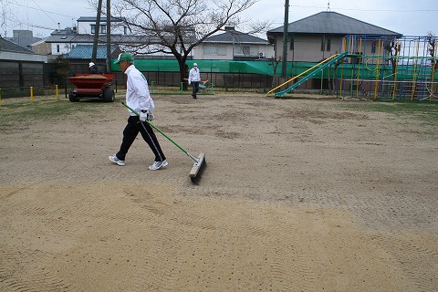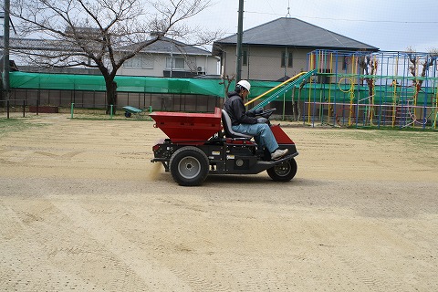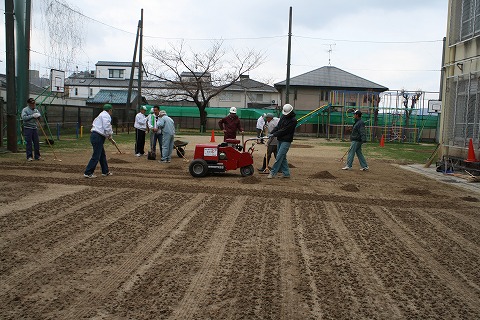 冬芝(ライグラス)をまいた後、ブラッシングを行いました