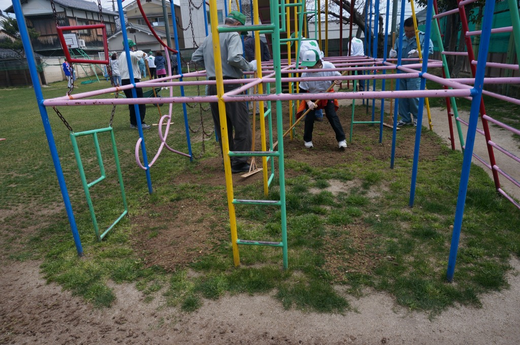 抜き取ったコアは遊具周辺など低い所に敷均しました。